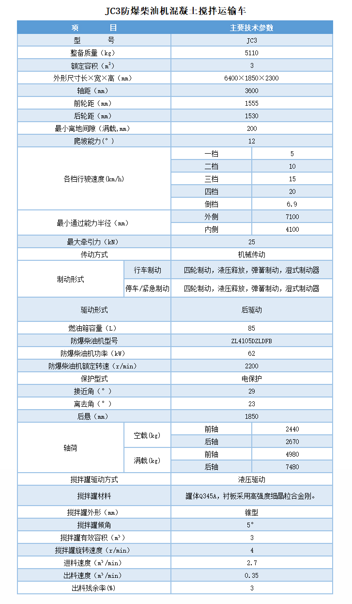 JC3防爆柴油機混凝土攪拌運輸車 |
