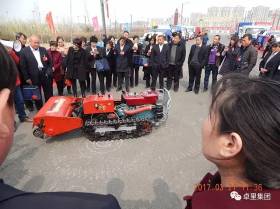 向兩會代表委員講解微型遙控履帶式拖拉機
